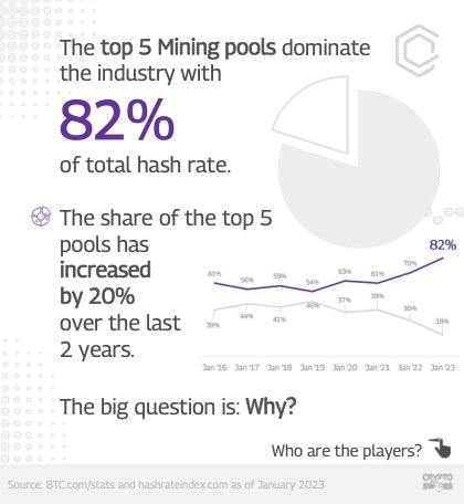 Over the last two years, the share of the top 5 pools has increased by 20%, which begs the question: why are these few mining pools so dominant?